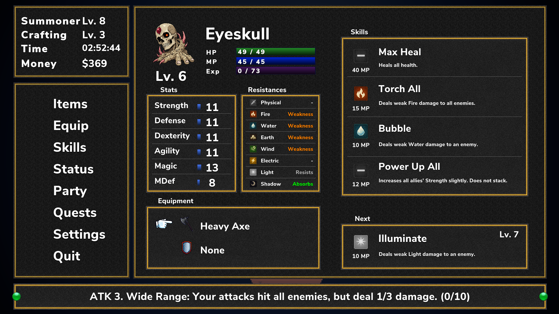 - Learn spells from weapons & armor (like Final Fantasy IX)
